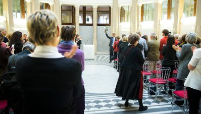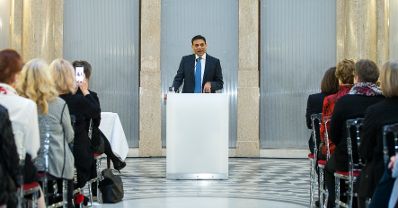 Am 14. Dezember 2017 überreichte Brigitte Winkler-Komar das Goldene Ehrenzeichen für Verdienste um die Republik Österreich an Vijay Upadhyaya. Im Bild Laudatorin Christa Schnabl.