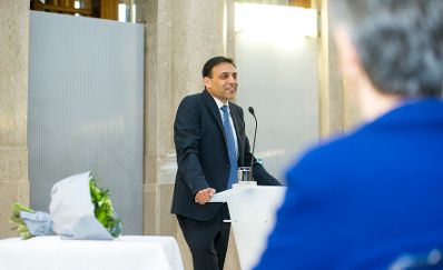 Am 14. Dezember 2017 überreichte Brigitte Winkler-Komar das Goldene Ehrenzeichen für Verdienste um die Republik Österreich an Vijay Upadhyaya (im Bild).