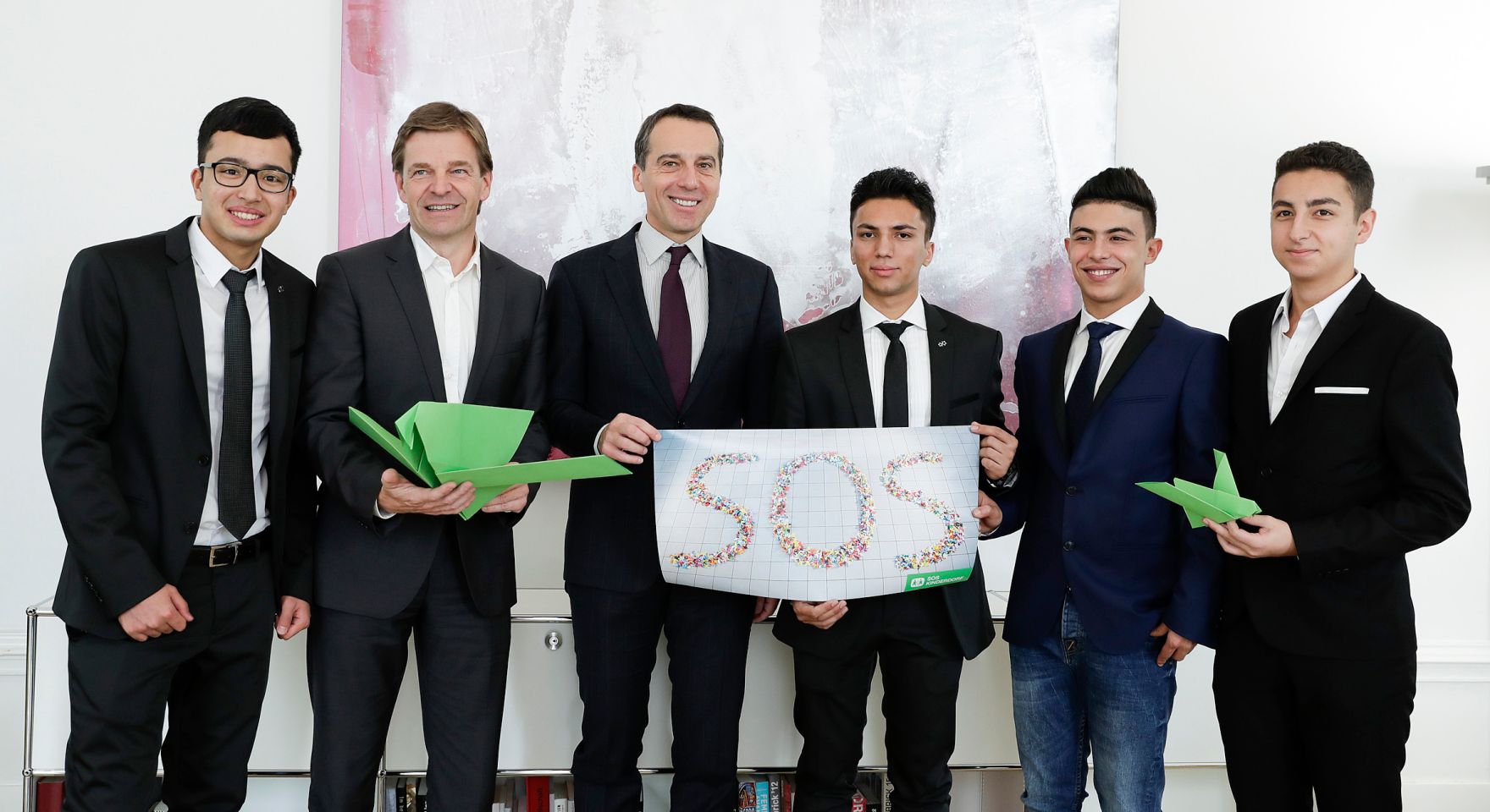 Jugendliche aus dem SOS Kinderdorf bei Bundeskanzler Kern