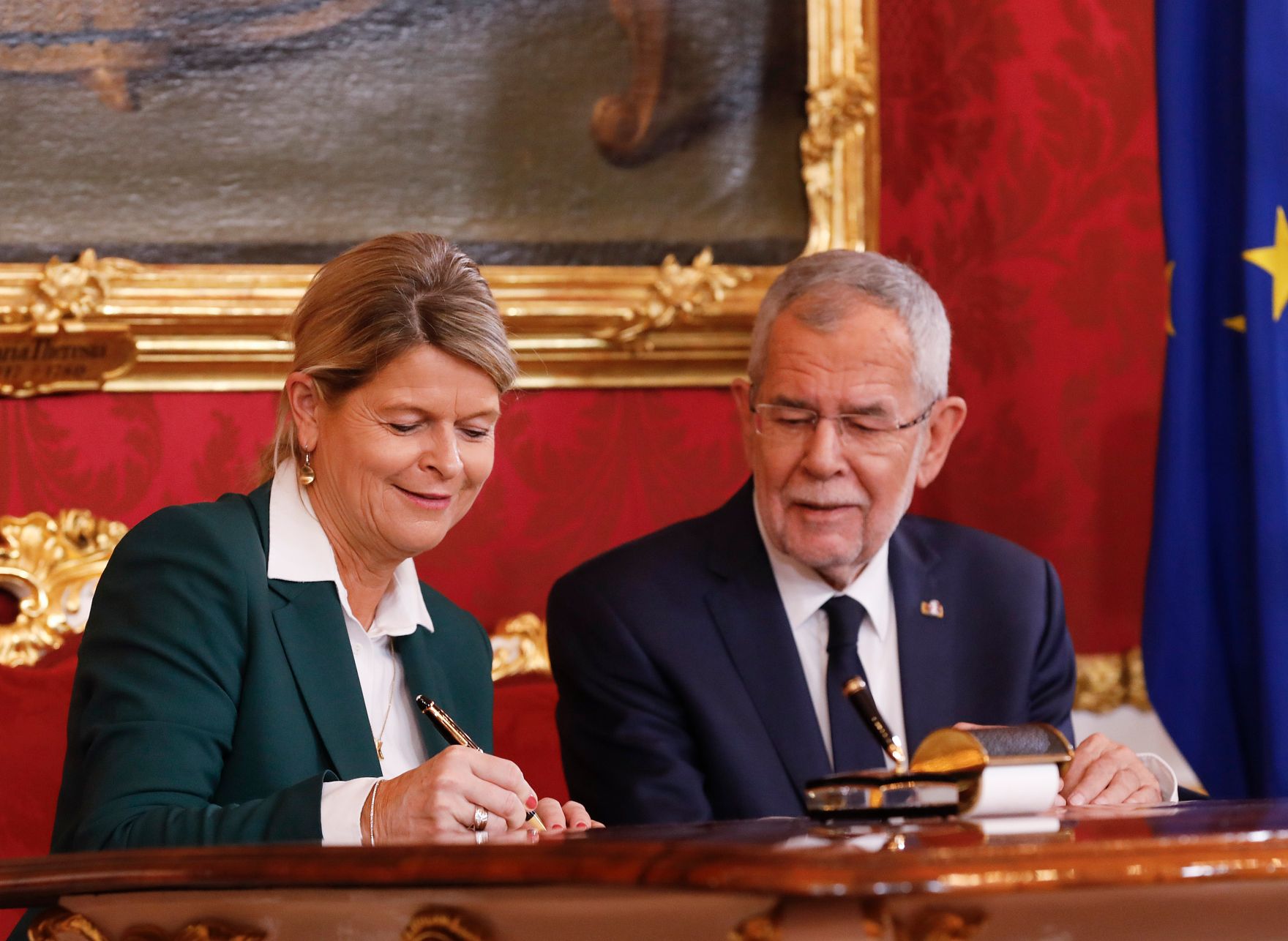 Am 7. Jänner 2020 wurde die neue Bundesregierung vom Bundespräsidenten in der Präsidentschaftskanzlei angelobt. Im Bild Bundespräsident Alexander Van der Bellen (r.) und Bundesministerin Klaudia Tanner (l.).