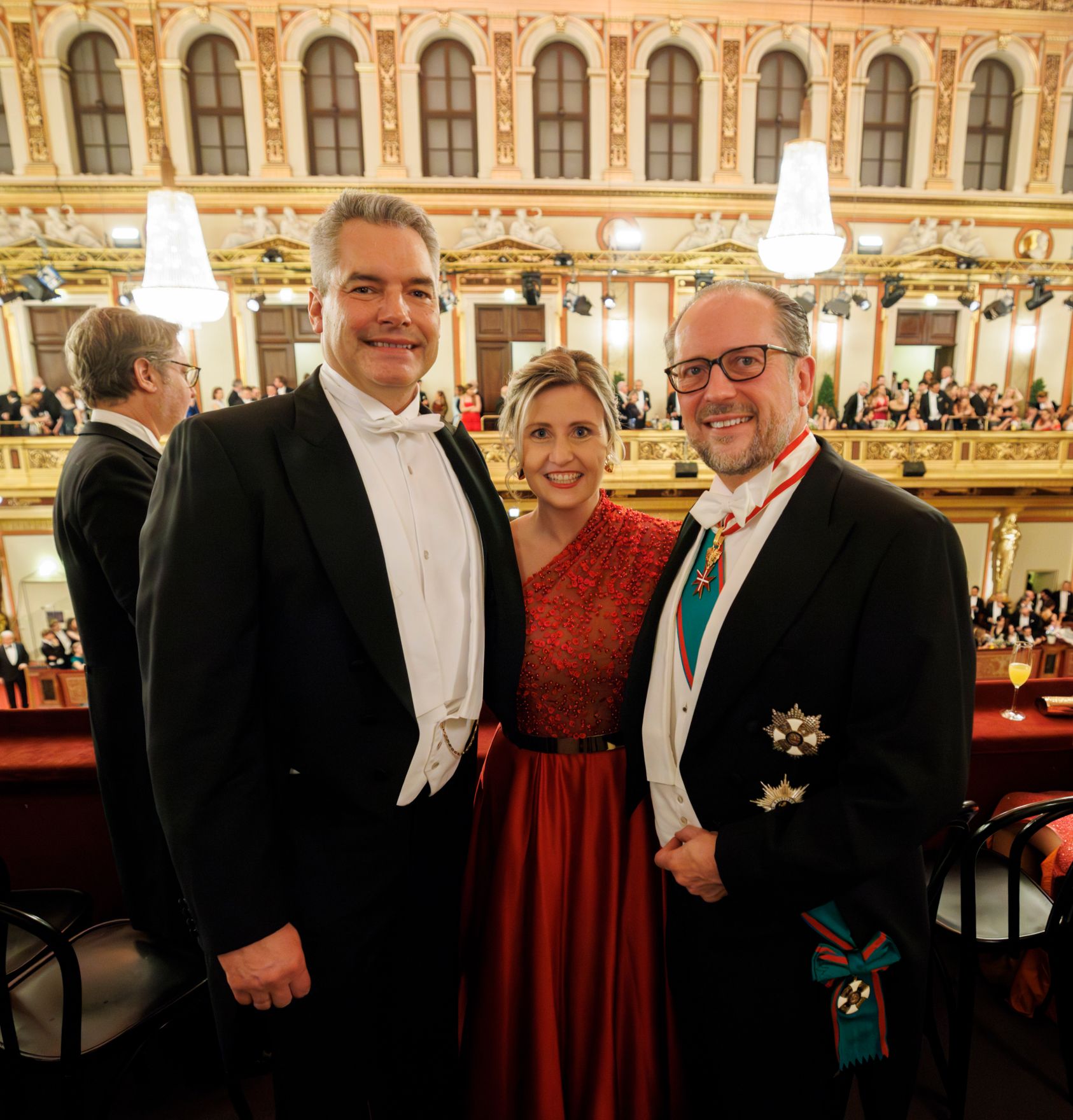 Am 25. Jänner 2025 besuchte Bundeskanzler Alexander Schallenberg (r.) den Ball der Industrie und Technik. Im Bild mit Bundesministerin Susanne Raab (m.) und dem Bundeskanzler a. D. Karl Nehammer (l.).