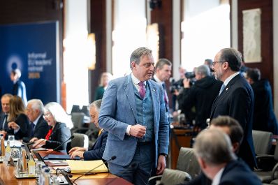 Am 03. Februar 2025 nahm Bundeskanzler Alexander Schallenberg (r.) am informellen EU-Gipfel der Staats- und Regierungschefs in Brüssel teil. Im Bild mit dem Premierminister von Belgien Bart De Wever (m.).