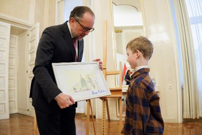 Am 13. Februar 2025 empfing Bundeskanzler Alexander Schallenberg Kinder der Ronald McDonald Kinderhilfe im Bundeskanzleramt.