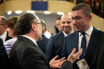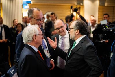 Am 14. Februar 2025 nahm Bundeskanzler Alexander Schallenberg (l.) an der Münchner Sicherheitskonferenz teil. Im Bild mit dem Nordmazedonischen Ministerpräsidenten Hristijan Mickoski (r.).