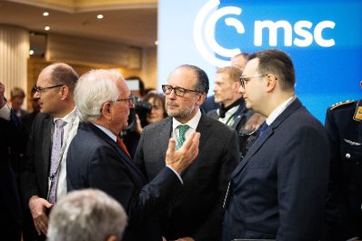 Am 14. Februar 2025 nahm Bundeskanzler Alexander Schallenberg (m.) an der Münchner Sicherheitskonferenz teil.
