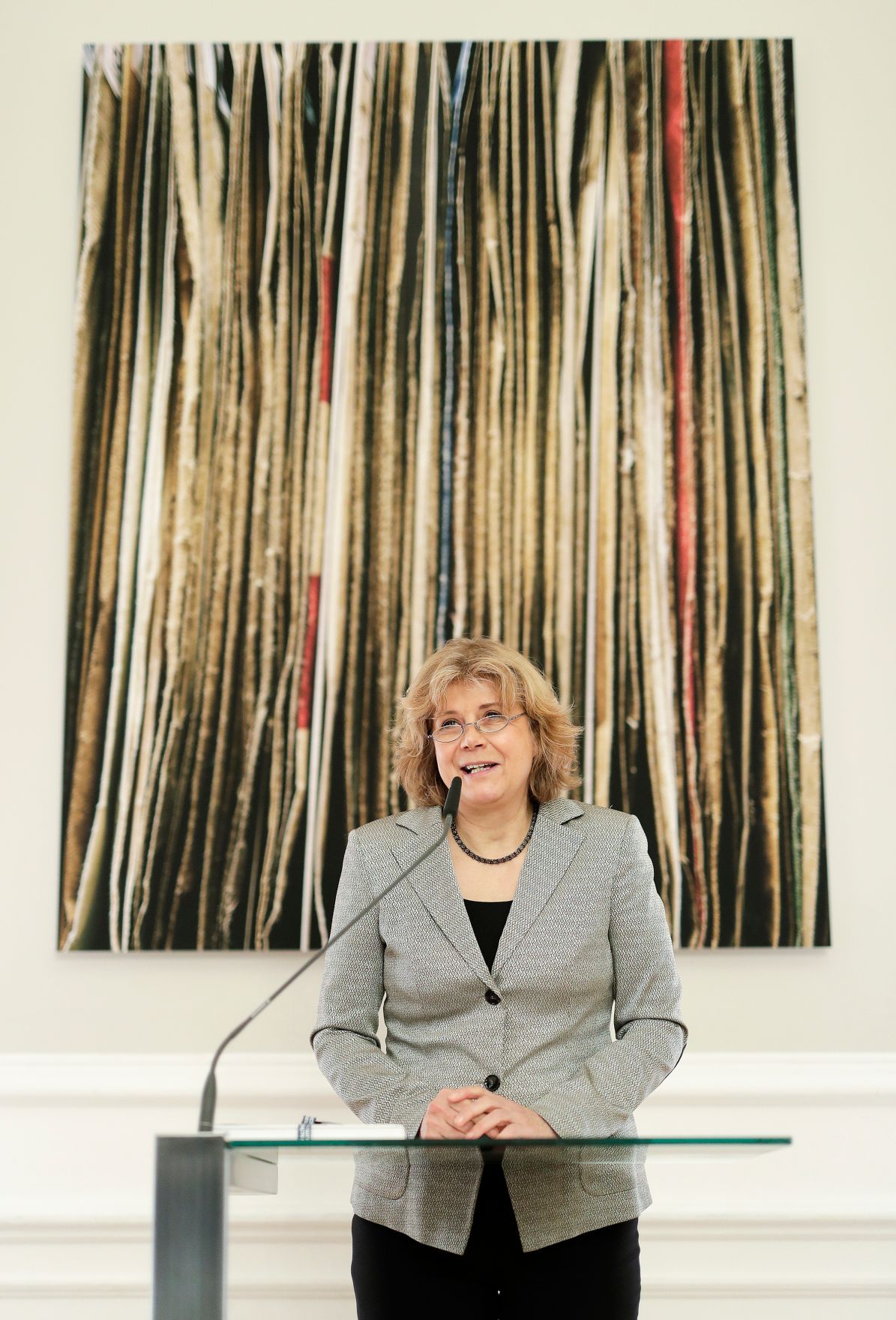 Am 28. Jänner 2019 eröffnete Bundesminister Gernot Blümel die Ausstellung Kunst und Technik im Bundeskanzleramt. Im Bild die Direktorin Gabriele Zuna-Kratky.
