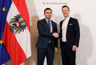 Am 21. Februar 2019 lud Bundesminister Gernot Blümel (l.) zur Konferenz "Future of the EU - view from the Western Balkans". Im Bild mit Sokol Dedja (r.), stellvertretender Minister für Europa und auswärtige Angelegenheiten der Republik Albanien.