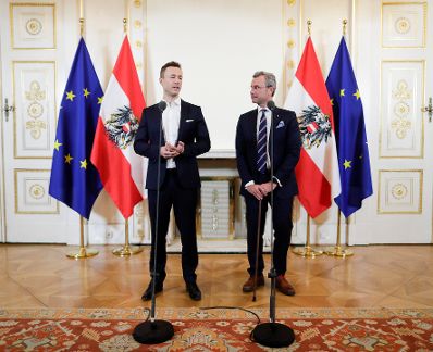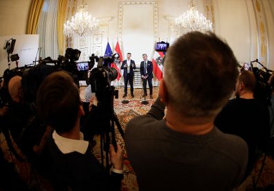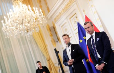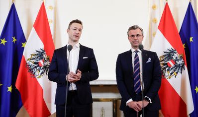 Am 26. Februar 2019 gab Bundesminister Gernot Blümel (l.) gemeinsam mit Bundesminister Norbert Hofer (r.) eine Pressekonferenz zum Thema Karfreitag.