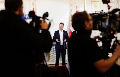 Am 26. Februar 2019 gab Bundesminister Gernot Blümel (im Bild) gemeinsam mit Bundesminister Norbert Hofer eine Pressekonferenz zum Thema Karfreitag.