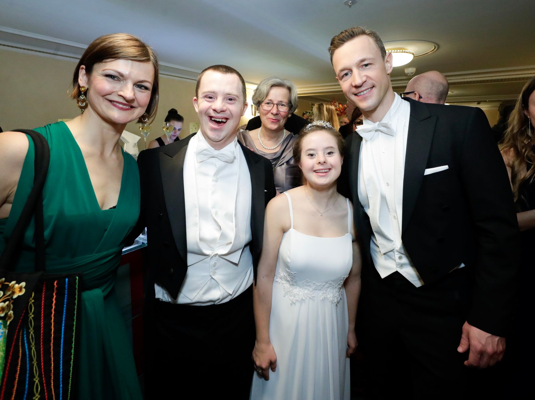 Am 28. Februar 2019 besuchte Bundesminister Gernot Blümel (r.) den Wiener Opernball. Im Bild mit dem Debütantenpaar Simon Couvreur (m.l.) und Maria Naber (m.r.).