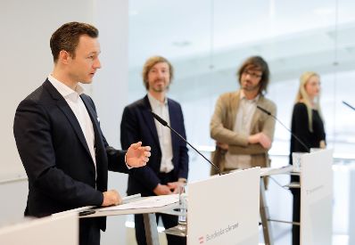 Am 03. April 2019 fand Pressekonferenz zum Thema "Architekturbiennale Venedig 2020" mit Bundesminister Gernot Blümel (m.) statt.