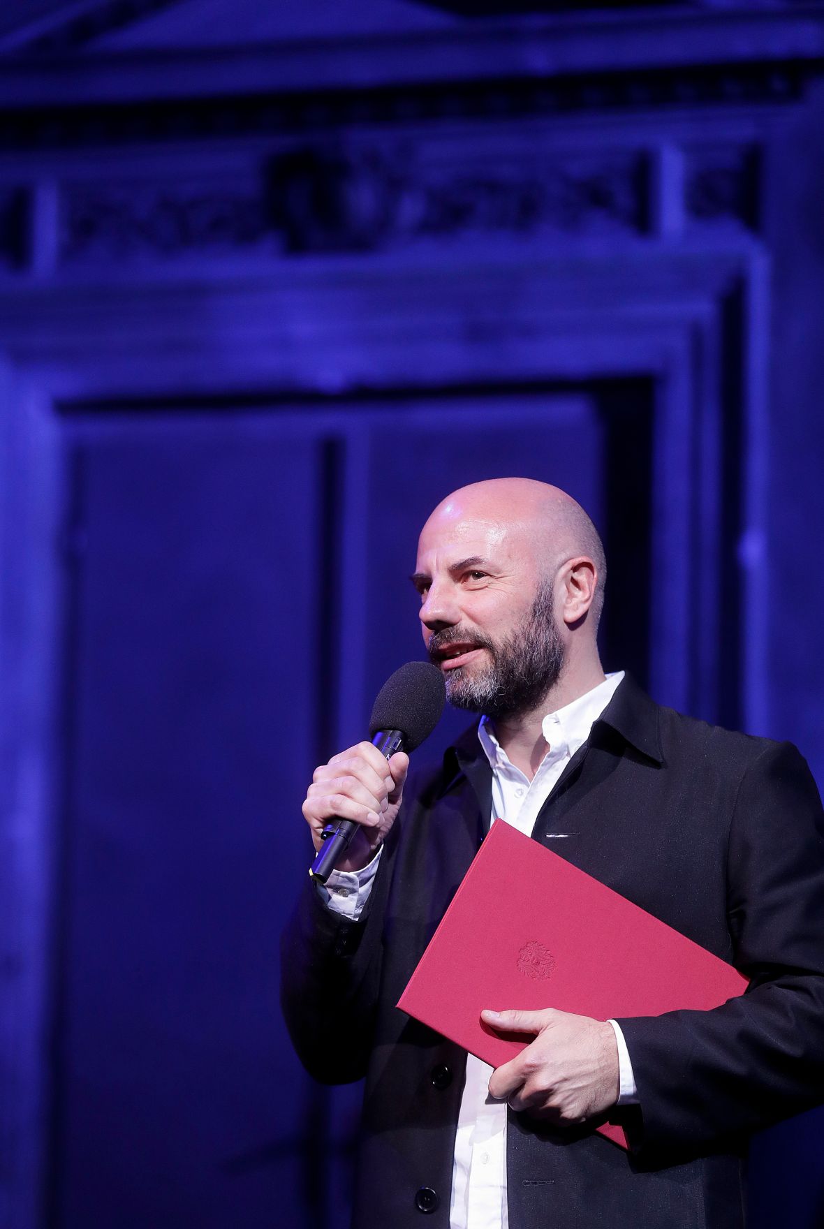 Am 5. November 2018 verlieh Bundesminister Gernot Blümel den "Österreichischen Buchpreis 2018" an Daniel Wisser (im Bild).