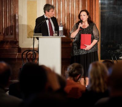 Am 6. November 2018 überreichte Bundesminister Gernot Blümel gemeinsam mit EU-Kommissar Tibor Navracsics die Europäischen Literaturpreise 2018. Im Bild die Preisträgerin Jelena Lengold.