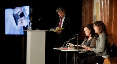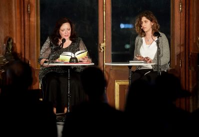 Am 6. November 2018 überreichte Bundesminister Gernot Blümel gemeinsam mit EU-Kommissar Tibor Navracsics die Europäischen Literaturpreise 2018. Im Bild die Preisträgerin Jelena Lengold (l.) mit der Blinden Schauspielerin Maria-Clara Ori (r.).
