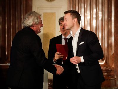 Am 6. November 2018 überreichte Bundesminister Gernot Blümel gemeinsam mit EU-Kommissar Tibor Navracsics die Europäischen Literaturpreise 2018. Im Bild der Preisträger Gast Groeber.