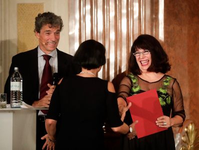 Am 6. November 2018 überreichte Bundesminister Gernot Blümel gemeinsam mit EU-Kommissar Tibor Navracsics die Europäischen Literaturpreise 2018. Im Bilddie Präsidentin der professionellen Jury Liana Sakelliou (rl) und die Preisträgerin Ivana Parvulescu (r.).