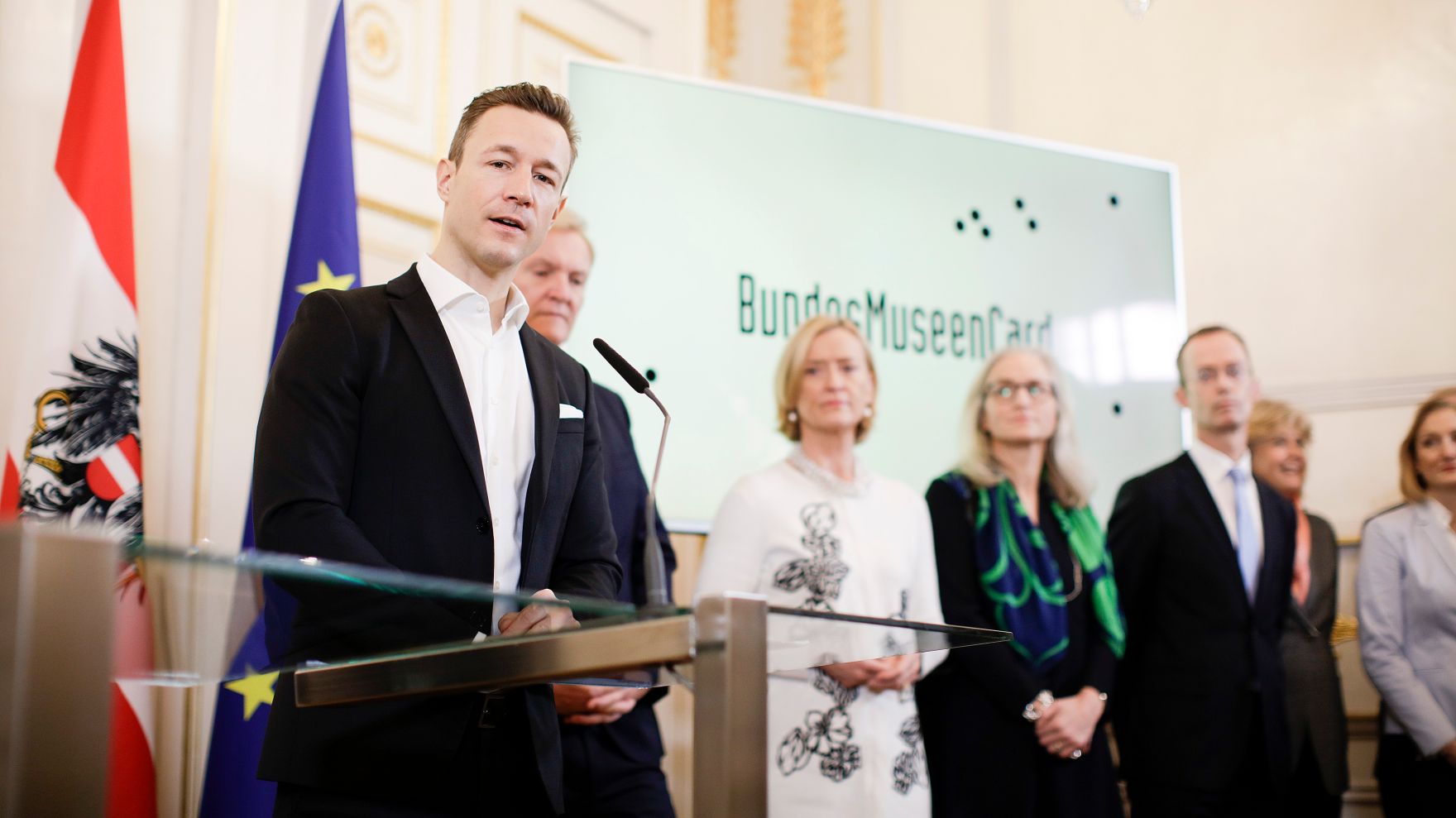 Am 10. Dezember 2018 gab Bundesminister Gernot Blümel (l.) bei einer Pressekonferenz Details zur geplanten BundesMuseenCard für 2019 bekannt.