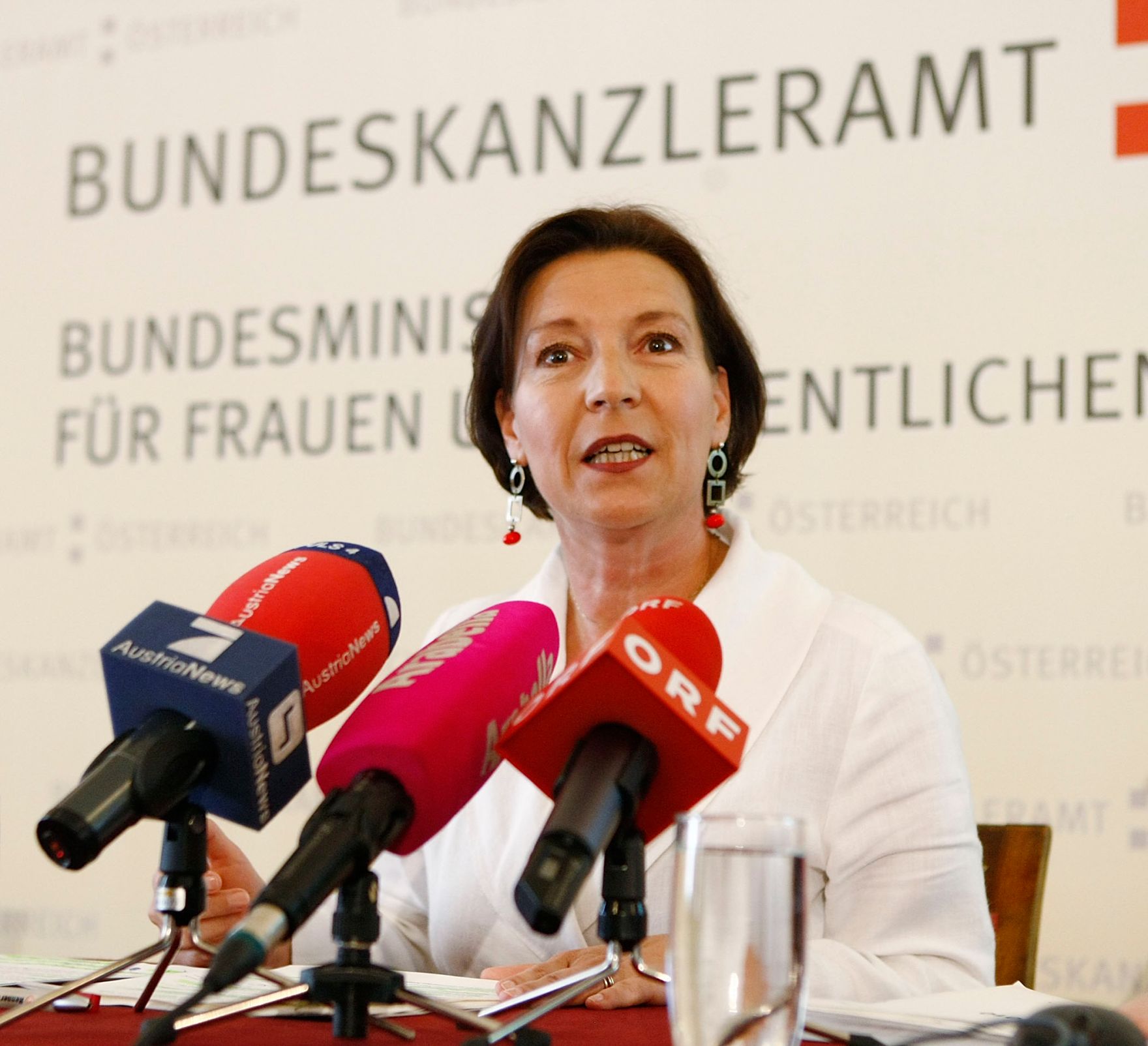 Bundesministerin für Frauenangelegenheiten und Öffentlichen Dienst Gabriele Heinisch-Hosek bei der Präsentation "Zeitverwendungsstudie".