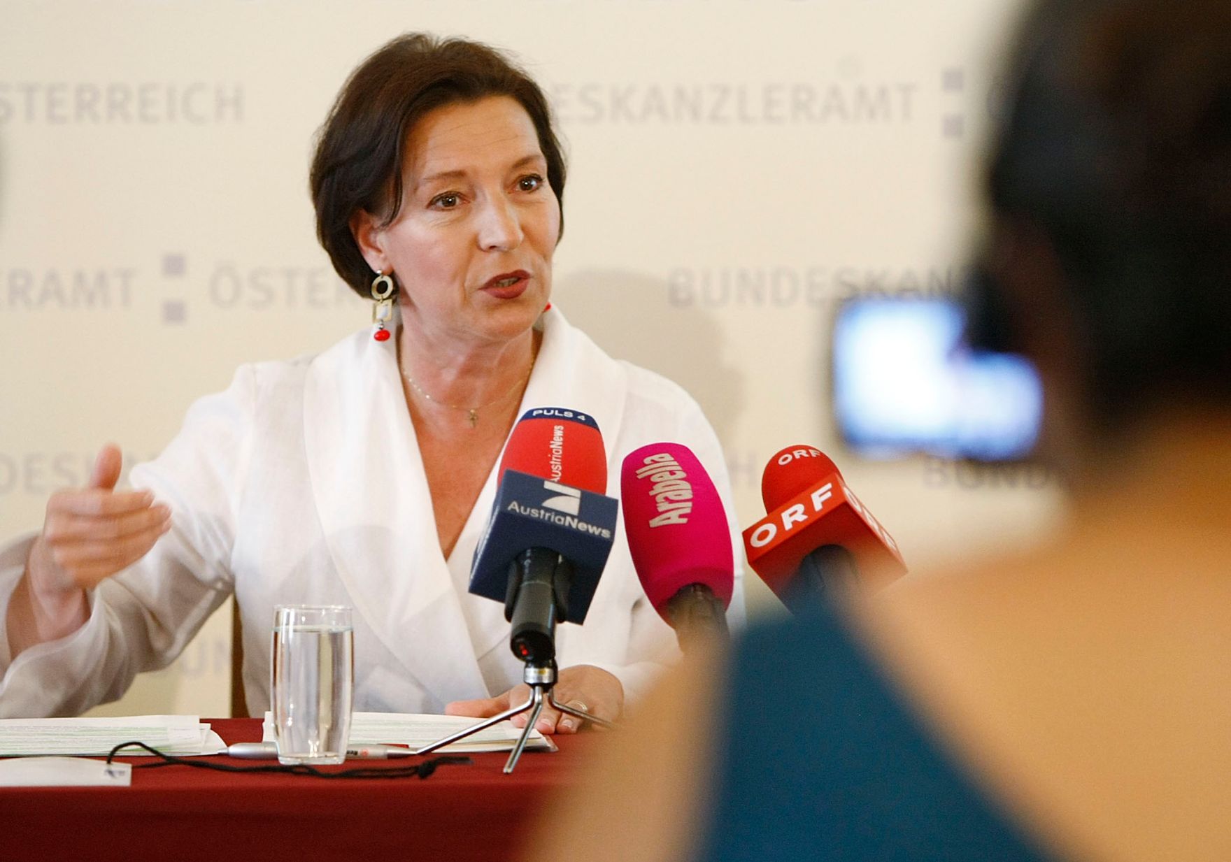 Bundesministerin für Frauenangelegenheiten und Öffentlichen Dienst Gabriele Heinisch-Hosek bei der Präsentation "Zeitverwendungsstudie".