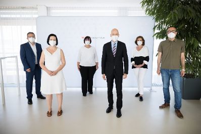 Am 18. Juni 2021 empfing Bundesminister Martin Kocher (3.v.r.) das Team vom dabei-austria Dachverband für berufliche Integration Austria zu einem Gespräch.