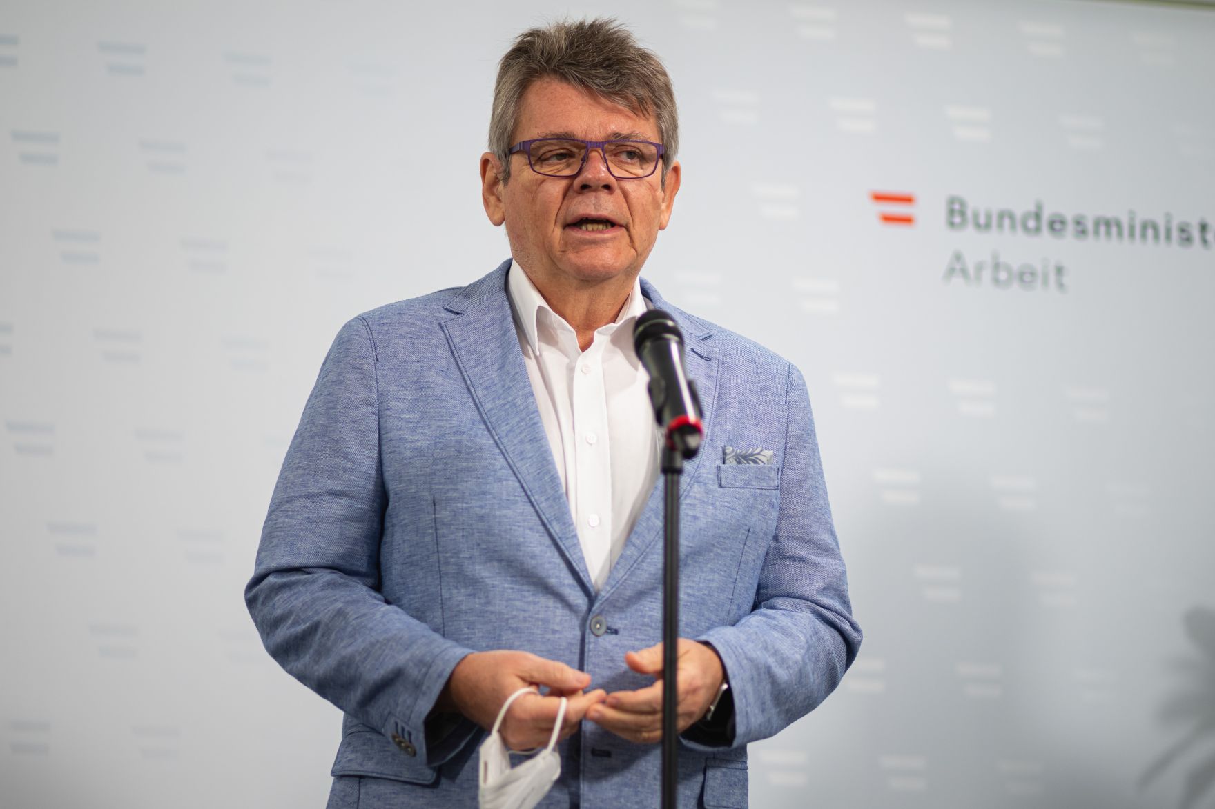 Am 15. November 2021 lud Bundesminister Martin Kocher zu einer Sozialpartnerrunde ins Arbeitsministerium. Im Bild ÖGB Präsident Wolfgang Katzian.