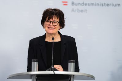 Am 1. Februar 2022 fand eine Pressekonferenz zur aktuellen Lage am Arbeitsmarkt mit Bundesminister Martin Kocher, Bundesministerin Susanne Raab und der Geschäftsführerin des AMS-Wien, Petra Draxl (im Bild) statt.