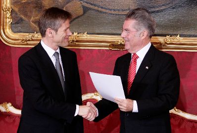 Am 2. Dezember 2008 wurde die neue Bundesregierung von Bundespräsident Heinz Fischer in der Präsidentschaftskanzlei angelobt. Im Bild Staatssekretär im Bundeskanzleramt Josef Ostermayer (l.) und Bundespräsident Heinz Fischer (r.).