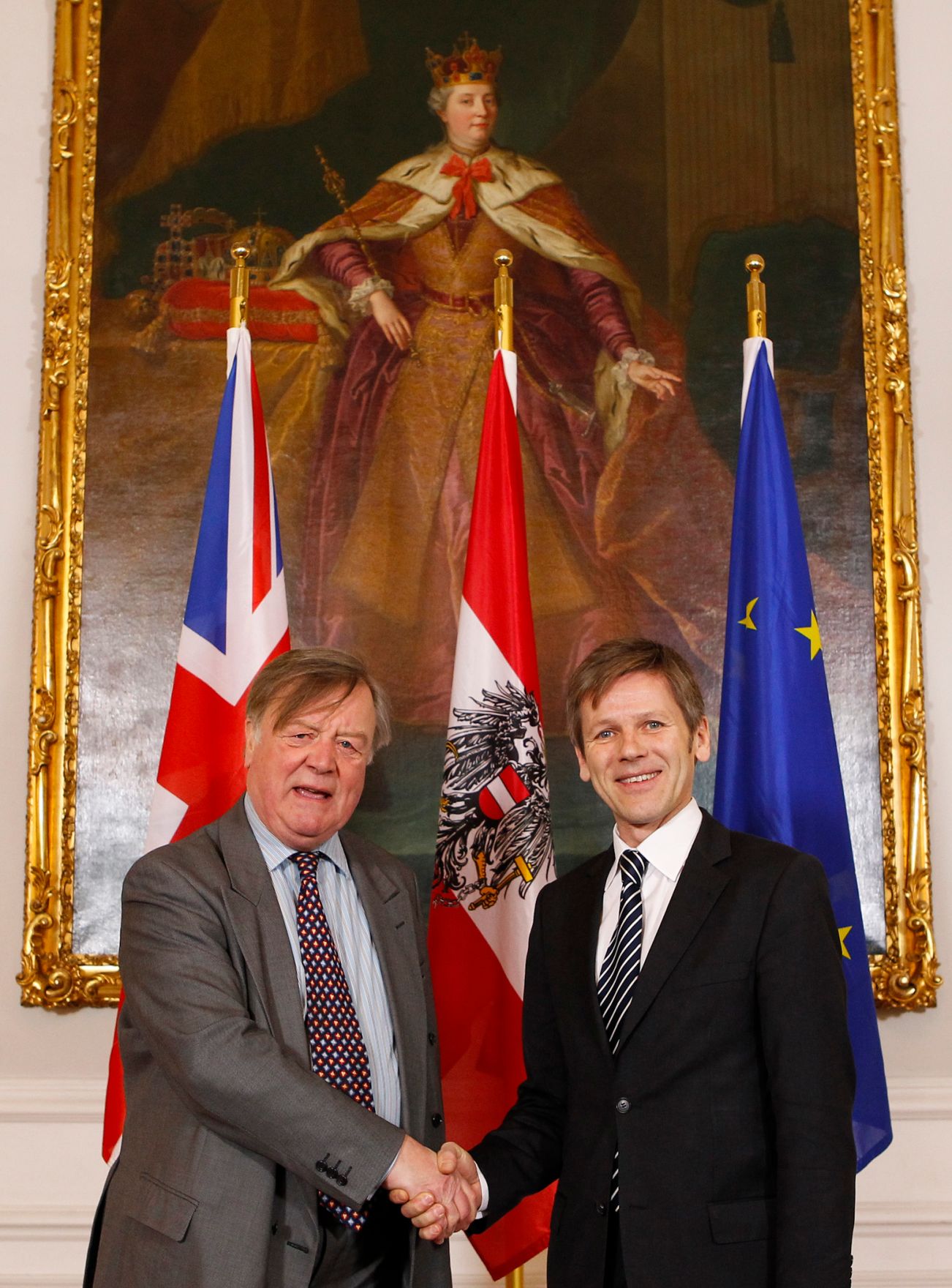 Am 13. Februar 2012 empfing Staatssekretär Josef Ostermayer (r.) den Justizminister des Vereinigten Königreichs Großbritannien und Nordirland, Kenneth Clarke (l.) zu einem Gespräch im Bundeskanzleramt.