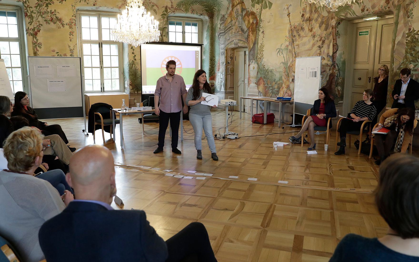 Am 9. Mai 2017 nahm Staatssekretärin Muna Duzdar (im Bild) am Antiziganismus Workshop im Schloss Laudon teil.