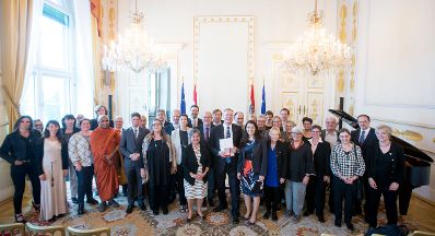 Am 24. Mai 2017 überreichte Staatssekretärin Muna Duzdar das Große Ehrenzeichen für Verdienste um die Republik Österreich an Heinz Vettermann. Im Bild Ministerialrat Anton Stifter.
