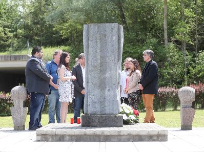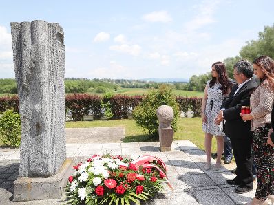 Am 31. Mai 2017 besuchte Staatssekretärin Muna Duzdar das Burgenland. Im Bild bei der Gedänkstätte Oberwart.