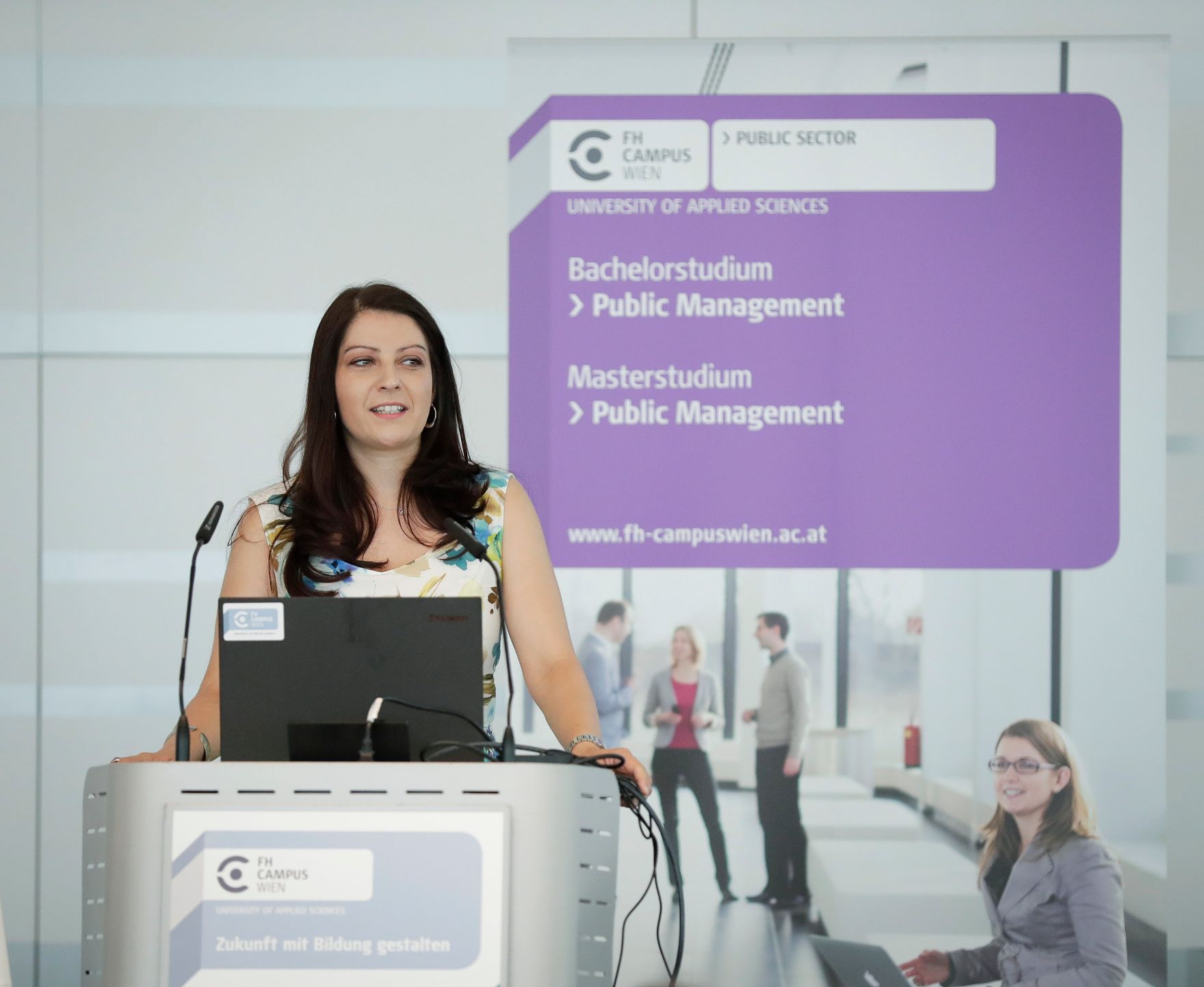Am 6. Juli 2017 hielt Staatssekretärin Muna Duzdar (im Bild) eine Festansprache für die Absolventinnen und Absolventen der Studiengänge Public Management an der Fachhochschule Campus Wien.