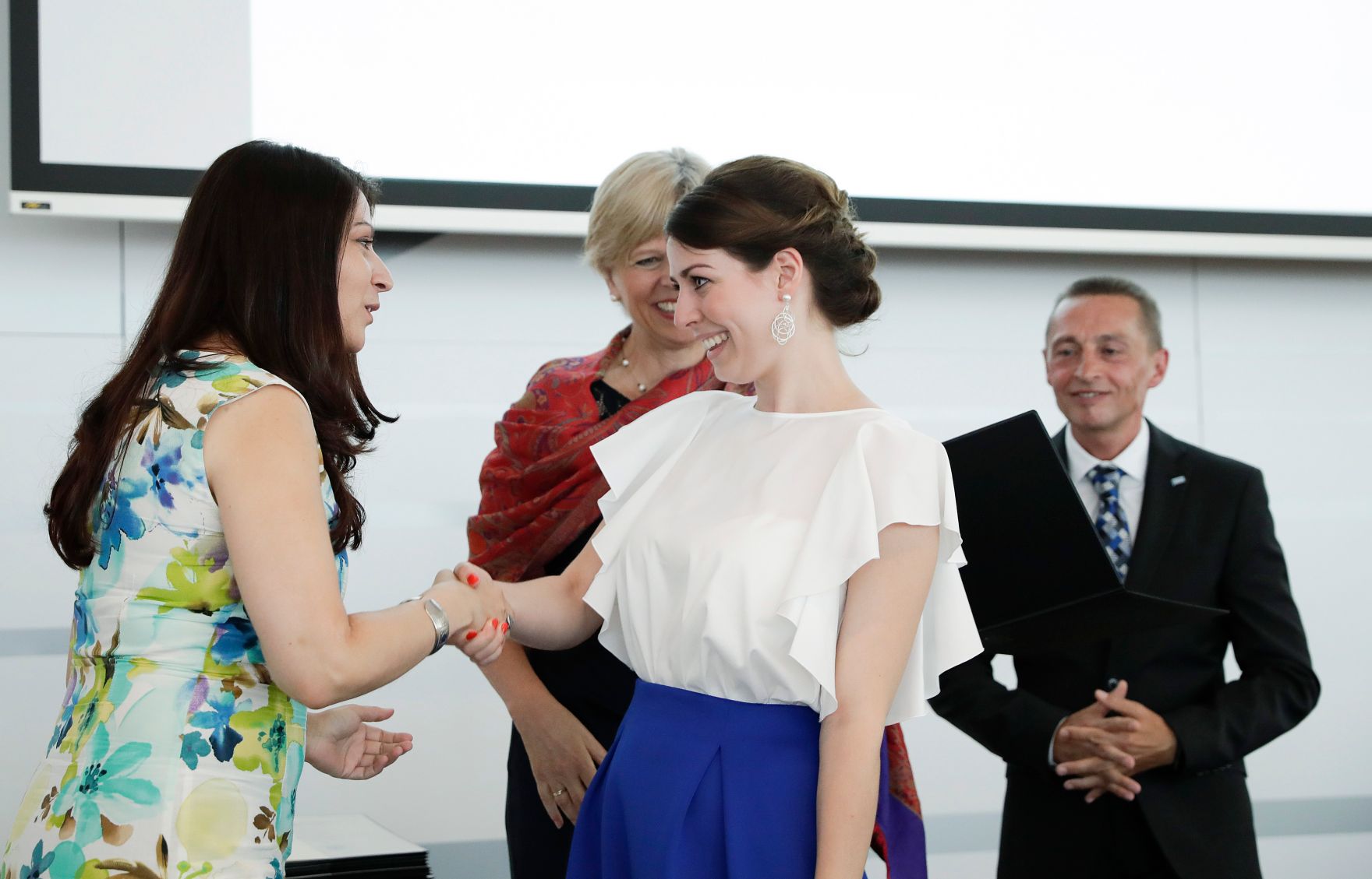Am 6. Juli 2017 hielt Staatssekretärin Muna Duzdar (l.) eine Festansprache für die Absolventinnen und Absolventen der Studiengänge Public Management an der Fachhochschule Campus Wien.