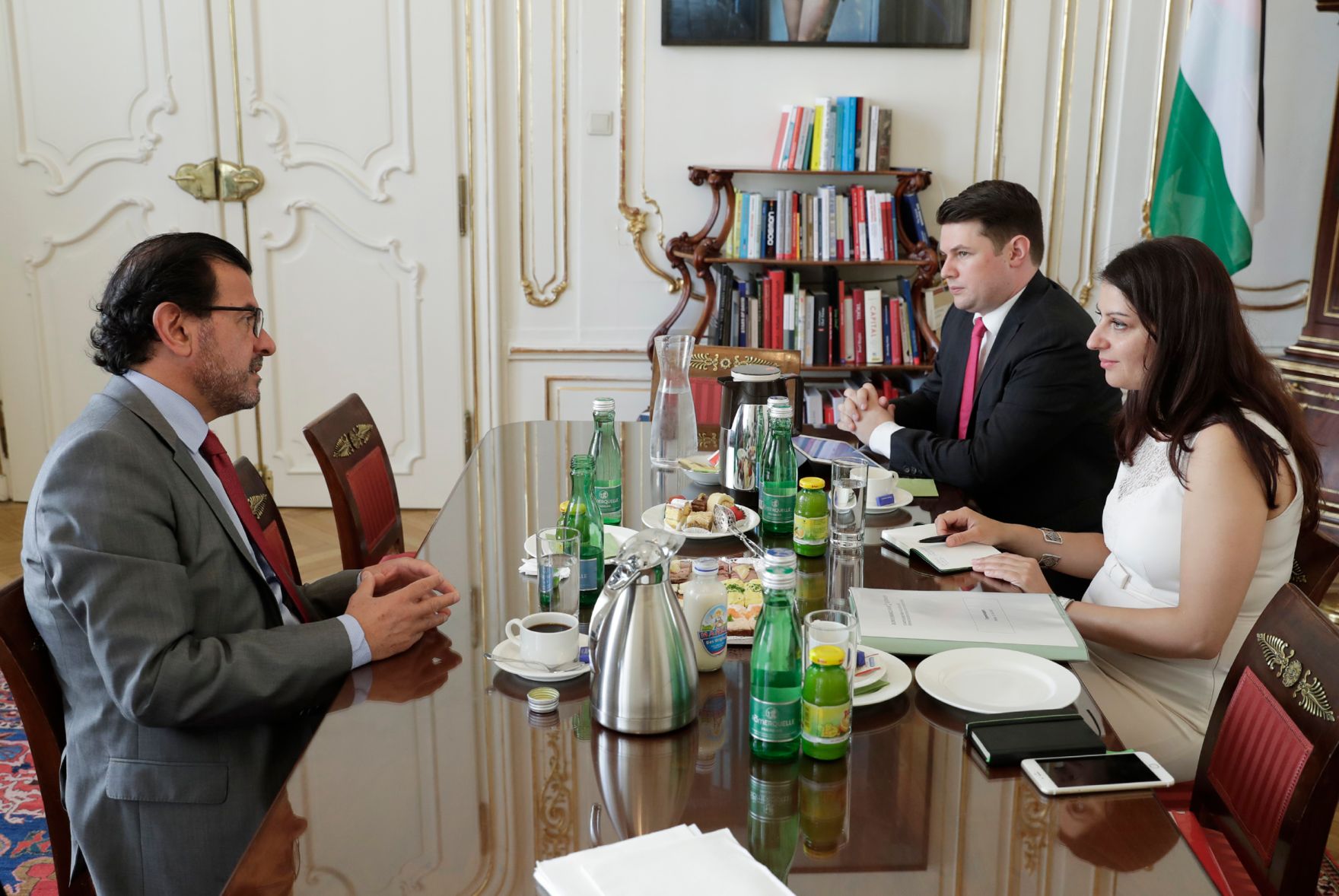 Am 10. Juli 2017 empfing Staatssekretärin Muna Duzdar (r.) den palästinensischen Botschafter Salah Abdel Sahfi (l.) zu einem Arbeitsgespräch.