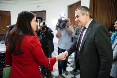 Am 26. September 2017 fand der Auftakt der Gehaltsverhandlungen Öffentlicher Dienst in der Hohenstaufengasse statt. Im Bild Staatssekretärin Muna Duzdar (l.) mit dem GÖD Vorsitzenden Norbert Schnedl (r.).