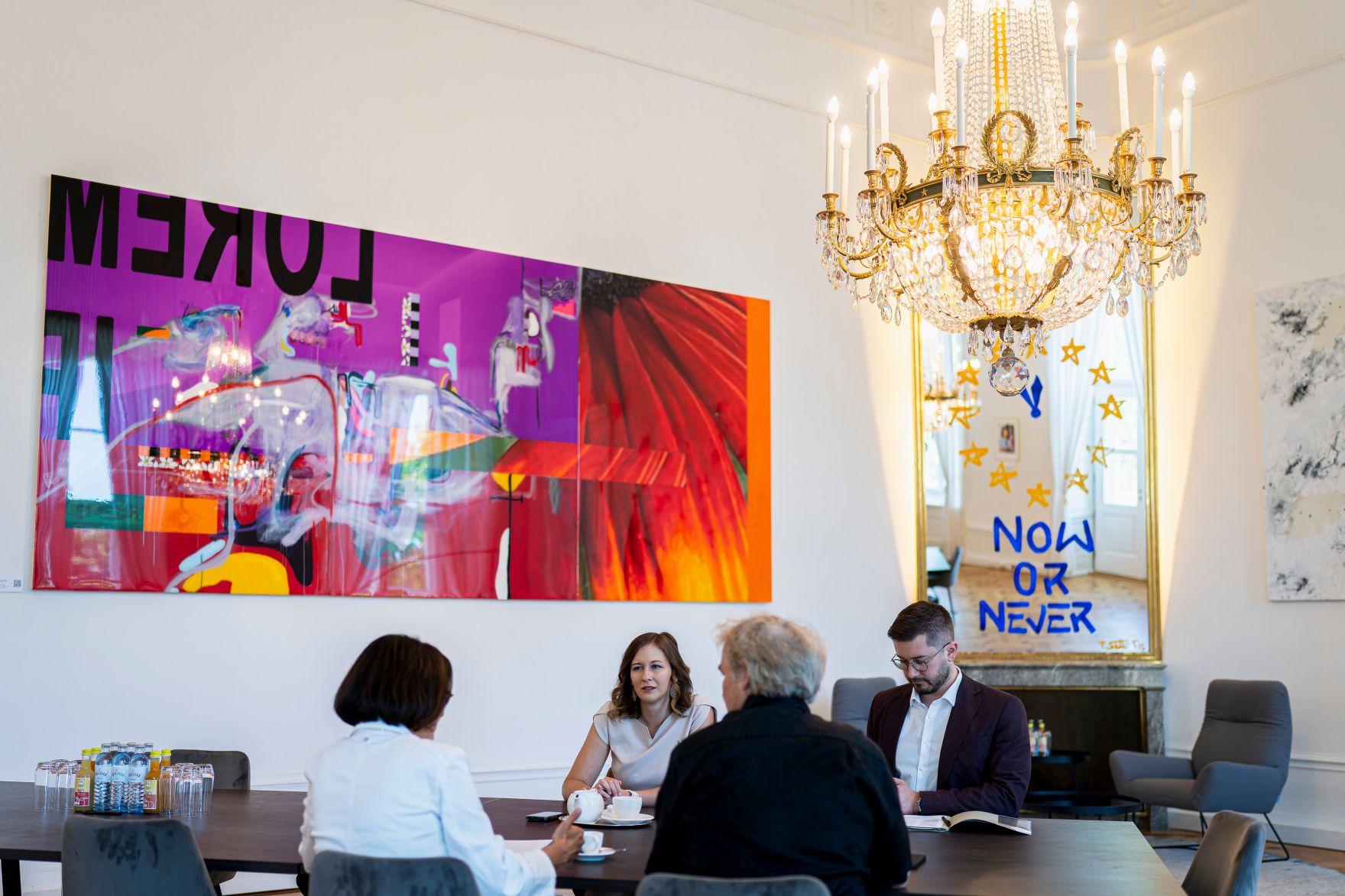 Am 2. Juli 2025 empfing Bundesministerin Claudia Plakolm (m.l.) die Direktorin der Diakonie Österreich, Maria Moser (l.) zu einem Arbeitsgespräch.