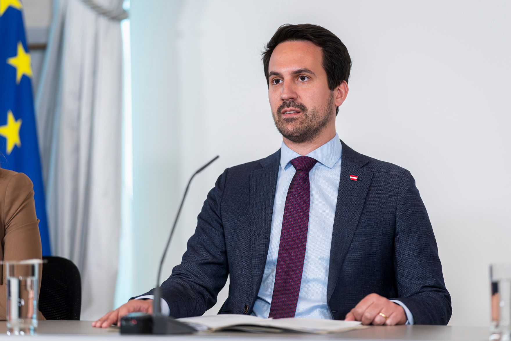 Am 2. Juli 2025 nahmen Bundesministerin Claudia Plakolm, Bundesminister Christoph Wiederkehr (im Bild) und Bundesministerin Korinna Schumann am Pressefoyer nach dem Ministerrat teil.