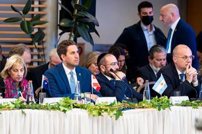 Am 26. Mai 2025 reiste Staatssekretär Alexander Pröll (2.v.r.) zu einem mehrtägigen Arbeitsbesuch nach Israel. Im Bild bei der Teilnahme an der internationalen Antisemitismuskonferenz.