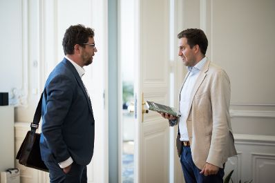 Am 3. Juli 2025 empfing Staatssekretär Alexander Pröll (l.) den Leiter vom Dokumentationsarchiv des österreichischen Widerstandes, Andreas Kranebitter (r.) zu einem Arbeitsgespräch.
