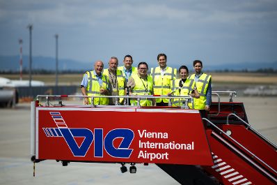 Am 4. Juli 2025 besuchte Staatssekretär Alexander Pröll (m.l.) anlässlich des Starts der ID-Austria Servicetour 2025 den Flughafen Wien-Schwechat.