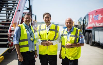 Am 4. Juli 2025 besuchte Staatssekretär Alexander Pröll (m.) anlässlich des Starts der ID-Austria Servicetour 2025 den Flughafen Wien-Schwechat.