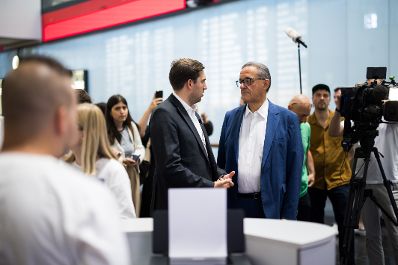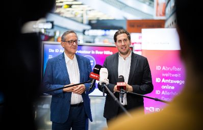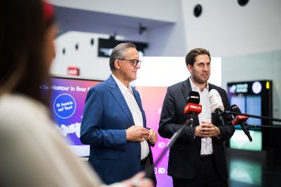 Am 4. Juli 2025 besuchte Staatssekretär Alexander Pröll (l.) anlässlich des Starts der ID-Austria Servicetour 2025 den Flughafen Wien-Schwechat.
