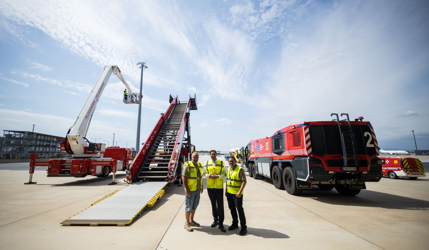 Am 4. Juli 2025 besuchte Staatssekretär Alexander Pröll (m.) anlässlich des Starts der ID-Austria Servicetour 2025 den Flughafen Wien-Schwechat.